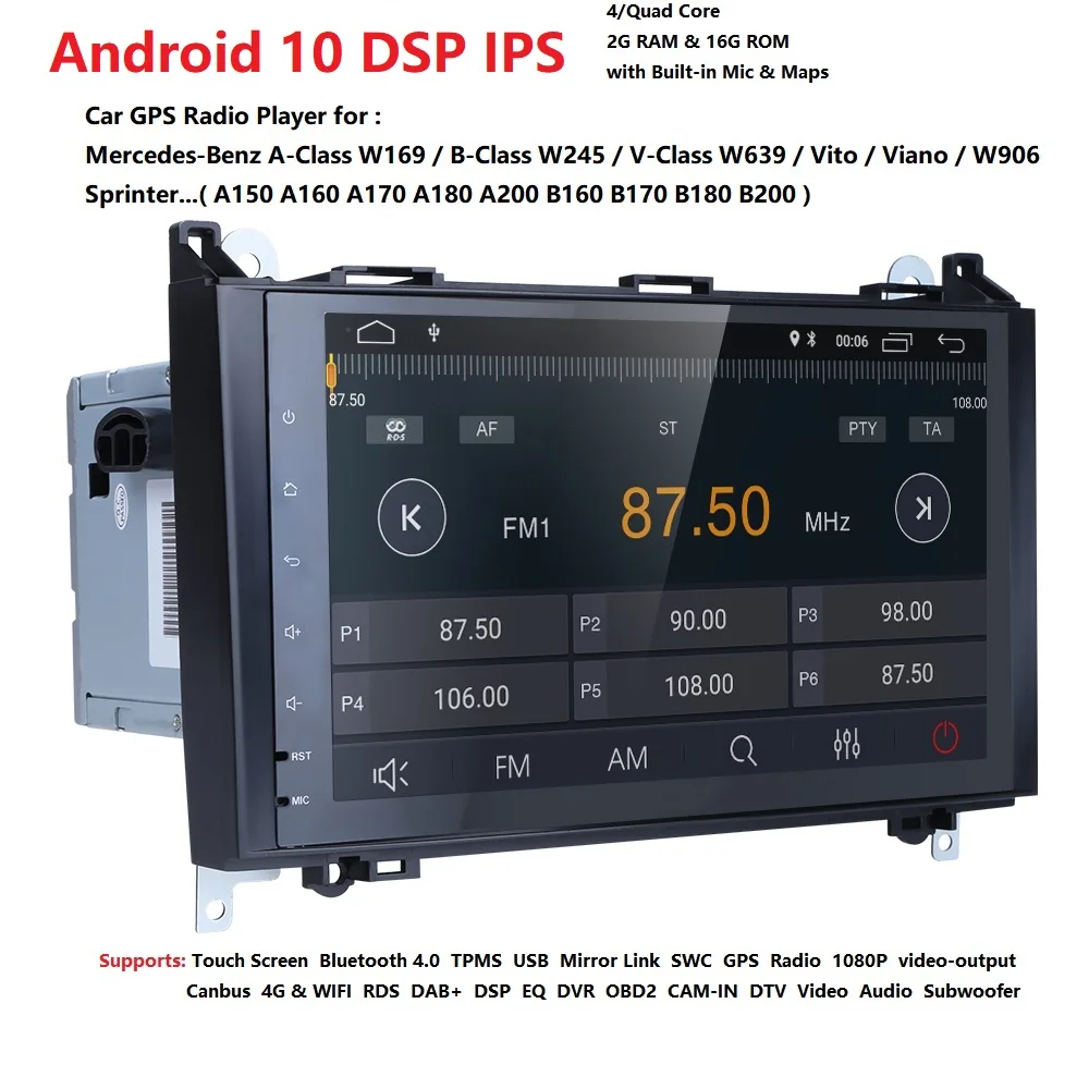 Hizpo 2din Android 10 QuadCore CarDVD For Benz Sprinter W169 W245 W906 Viano Vito W639 B200 with WIFI GPS Navigation Radio 2GRAM : Click Here