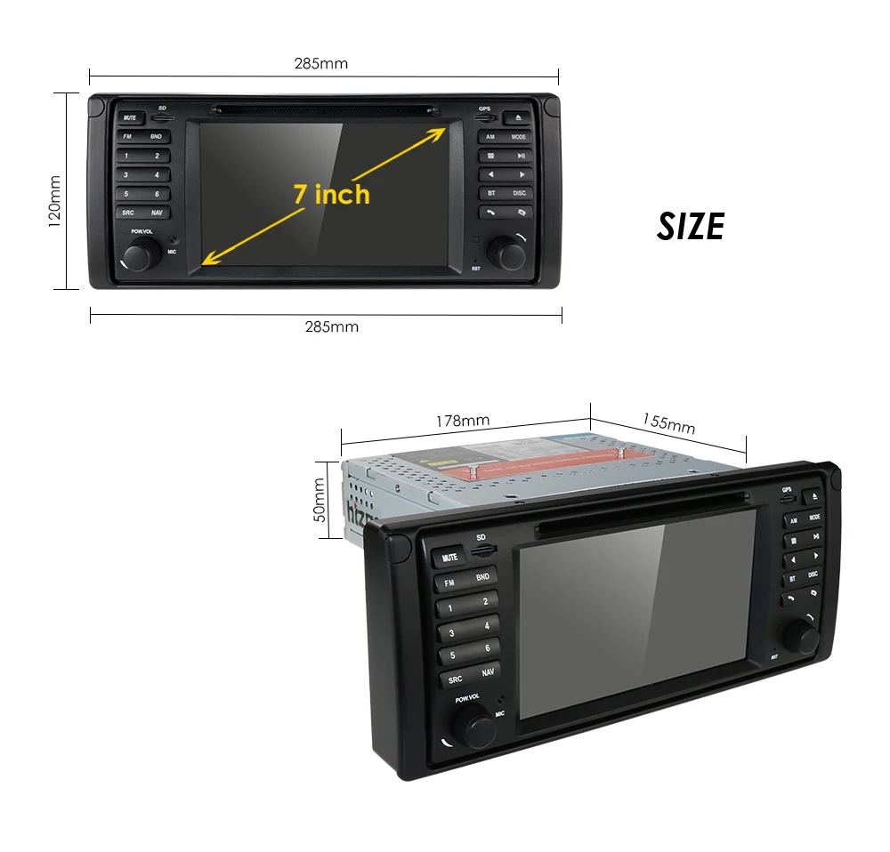 - Product name : 7''DSP Android 9.0 4GB ROM 64GB ROM Car Stereo Radio DVD Player GPS Navigation for BMW E39 1995-200