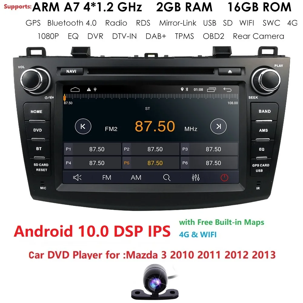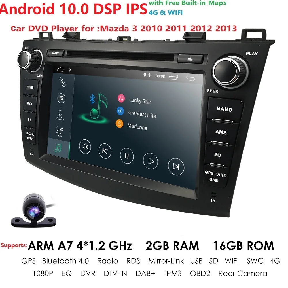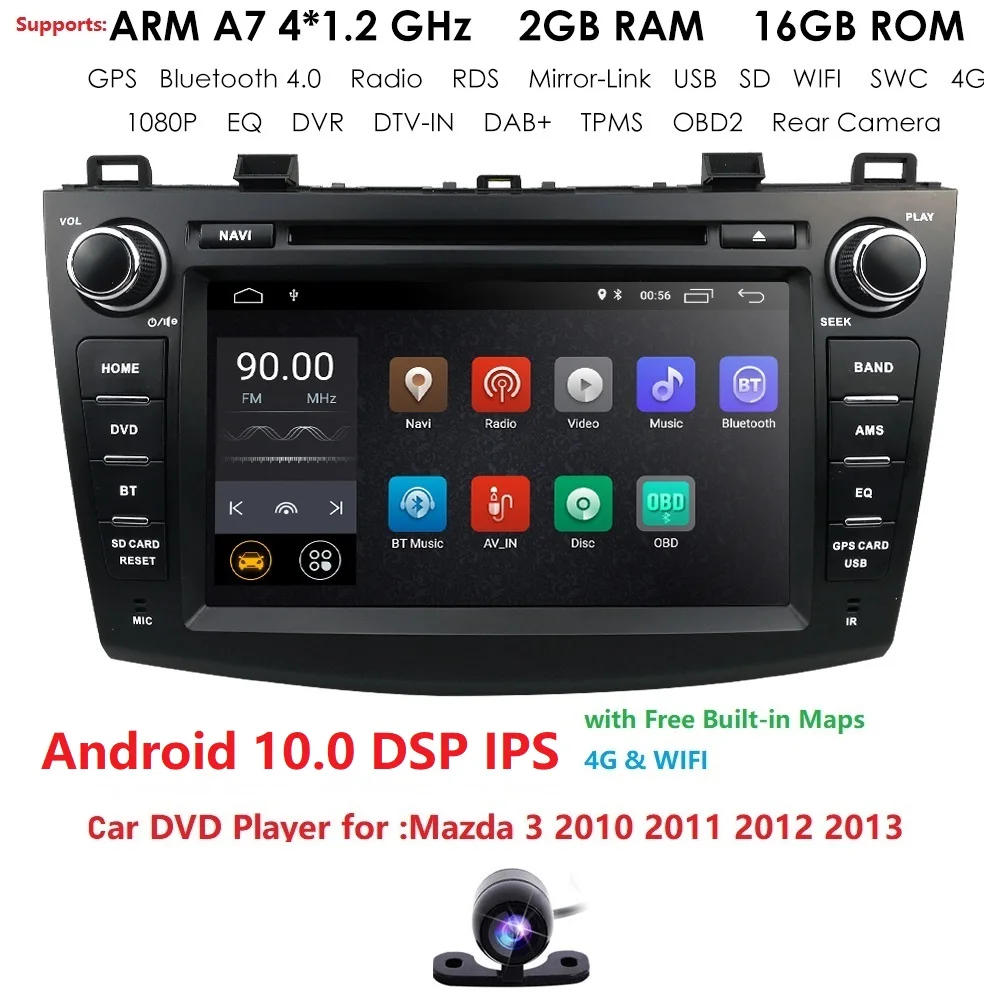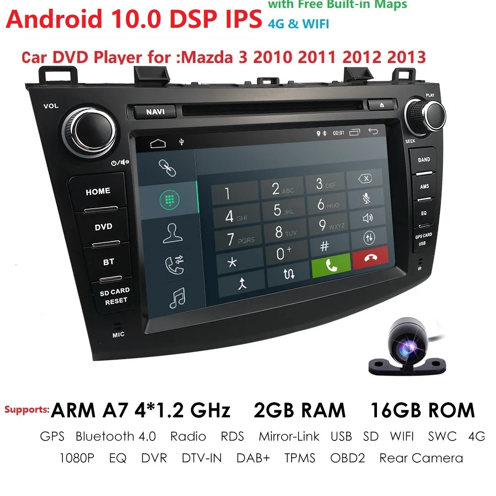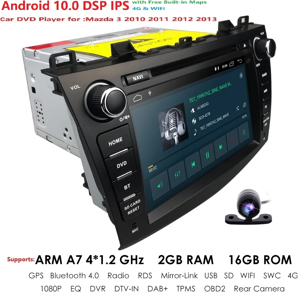 4G WIFI Android 10.0 Car DVD radio stereo Player For Mazda 3 2010-2013 1024*600 IPS Screen BT GPS DAB SD DVR Free rear camera : Click Here